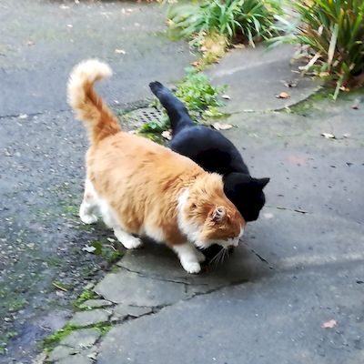 Unsere beiden Tierheimkatzen Abigail und Dylan haben sich eng angefreundet und halten sich sehr oft im grossen Garten einer Katzenliebhaberin in der erweiterten Nachbarschaft des Tierheims auf. Sie sind immer noch scheu, fühlen sich dort aber sichtlich wohl.