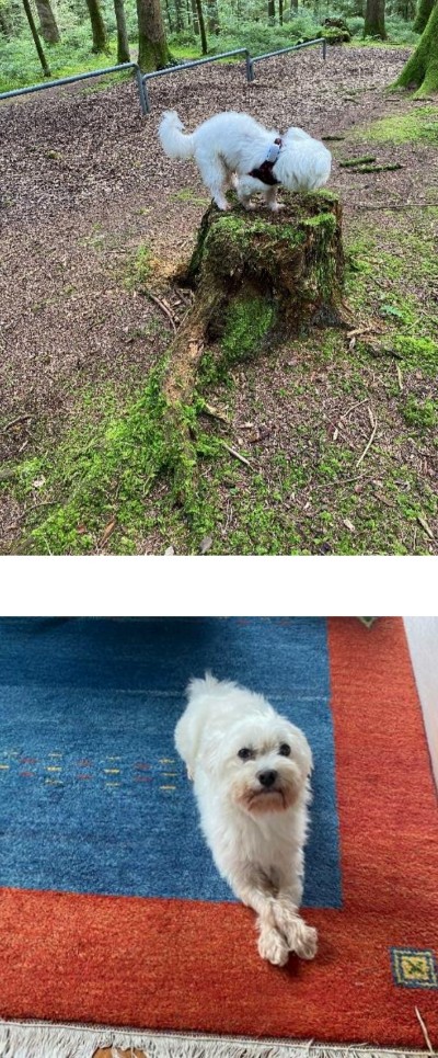 Bei einem Spaziergang im Wald trafen wir einen Hund, der von weitem aussah wie unsere verstorbene Bolonka-Hündin Dalina. Die Besitzerin erzählte uns, dass ihr Hund ein Malteser ist. Diese Begegnung hat mich noch einmal den ganzen Tag so richtig durchgeschüttelt.