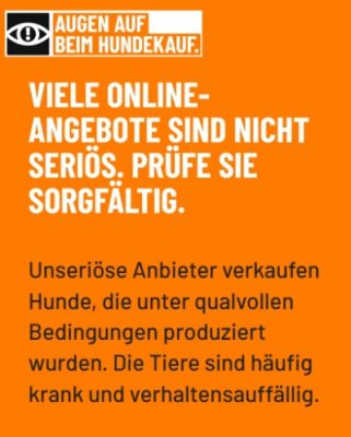 Hunde aus Internetkäufen stammen meist von verantwortungslosen Vermehrern im In- und Ausland. Sie werden häufig unter tierschutzwidrigen Bedingungen gezüchtet und viel zu früh von ihren Müttern getrennt. Sie sind häufig krank, ungeimpft und schlecht sozialisiert. Dadurch kämpfen sie ein Leben lang mit gesundheitlichen Problemen, sind ängstlich, aggressiv oder menschenscheu. Bei den Besitzerinnen und Besitzern kann dies nicht nur zu hohen Tierarztkosten, sondern auch zu Überforderung führen.