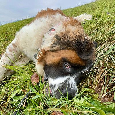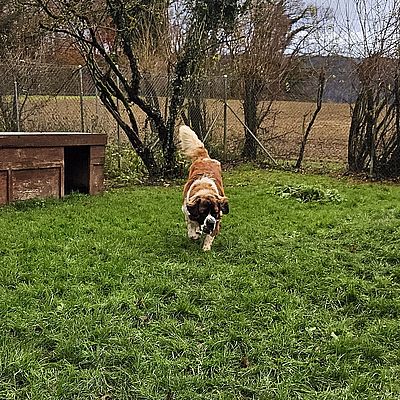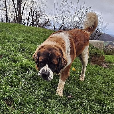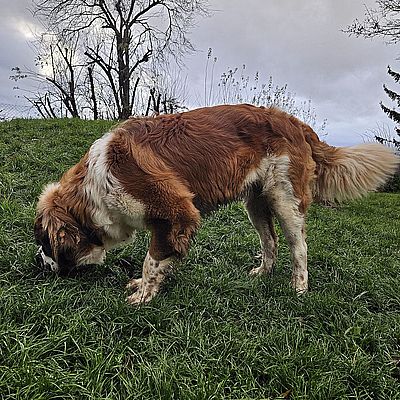 Jungrüde Balou zeigt sich uns gegenüber freundlich, verschmust und aufmerksam. Fremde Personen, vor allem Männer, auf "seinem" Grundstück werden zuerst einmal misstrauisch begutachtet. Grundgehorsam ist etwas vorhanden, da muss noch einiges weiterhin aufgebaut und gefestigt werden z.B. auch das Alleine bleiben. In der Zwischenzeit hat Balou schon einiges gelernt, ist viel offener und zugänglicher geworden 😉 Autofahren kennt Balou. Er lebte bis anhin mit kleinen Hunden und einem grossen Hund zusammen. Balou benötigt abwechslungsreiche Spaziergänge, Kopfarbeit, z.B. auch Fährten und Suchspiele sind für ihn geeignet, je nach dem was ihm Spass bereitet, darf aber nicht überfordert werden, denn genügend Ruhephasen sind sehr wichtig für das Wohlbefinden eines Hundes. Balou benötigt zwingend eine konsequente, sichere, faire, aber feine Führung. Eine gute, passende Hundeschule ist ein Muss. Balou wurde als Welpe von der Vorbesitzerin aus Deutschland importiert. Abgegeben wurde er aus privaten Gründen und Zeitmangel.