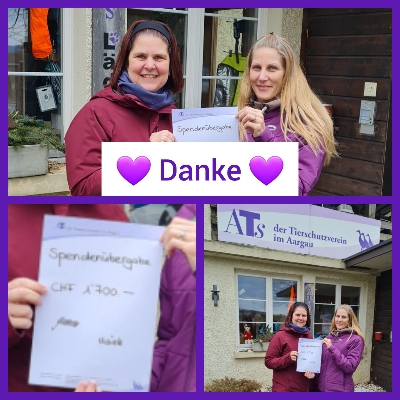 In der letzten Woche waren Yvonne und Michèle bei uns im Tierheim und übergaben uns das Ergebnis ihrer Spendensammlung zugunsten des ATs. 1700 Franken!! Wow!! Wir sind mächtig gerührt und erfreut.