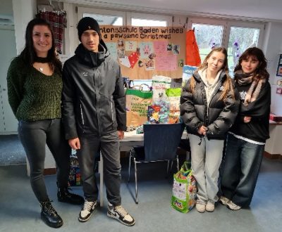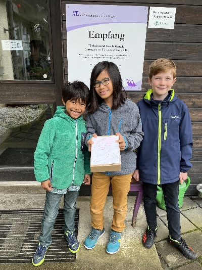 Lioia, Anna, Timea und Ivan verkauften selbstgemachte Guetzli, Punsch und Kuchen zugunsten des ATs und übergaben uns ihre Einnahmen in Höhe 77.- Franken.