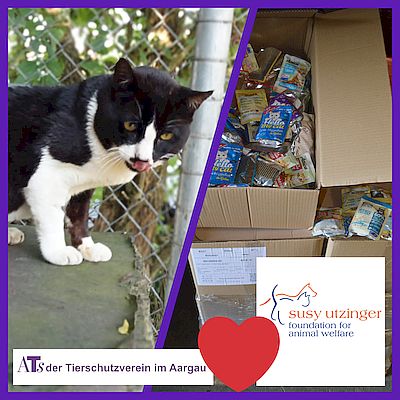 Mit einer Palette Hunde- und Katzenfutter unterstützte die Susy Utzinger Stiftung (SUST) auch in diesem Sommer unsere Tierschutzarbeit. Ein grosses Dankeschön dafür vom ATs Team und ein begeistertes Miauen und Bellen aus unserem Hunde- und Katzenhaus.