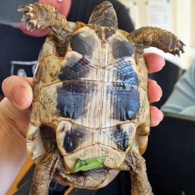 Die Schildkröte wurde vom Finder in seinem Garten gefunden und sie wurde zu uns ins Tierheim gebracht. Ihr Zustand ist sehr gut.
