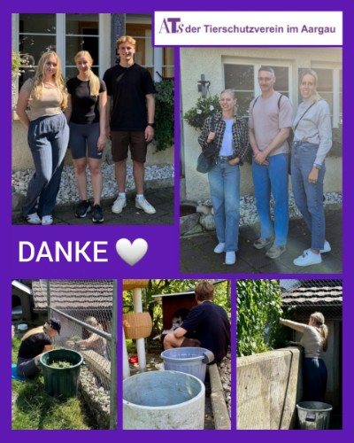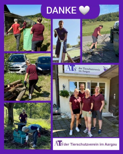 Zu unserer ganz grossen Entlastung und Freude melden sich im Jahresverlauf immer wieder Firmen und auch Gruppen von Privatpersonen bei uns, die uns mit Arbeitskraft unterstützen möchten. Mit diesen Gruppen verabreden wir dann sogenannte Helfer-Tage. Wir schauen, wo eine tatkräftige Unterstützung am meisten gebraucht wird und planen die Helfer-Gruppen in unseren Tierheim-Alltag ein. Interessenten für diese zupackenden Hilfseinsätze melden sich bitte bei unserem Sekretariat via Mail an info@tierschutz-aargau.ch.