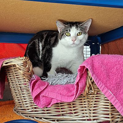 Kater Hermes tauchte Mitte März bei den Findern vor Ort auf und ist geblieben. Er war sehr hungrig und befand in mässigem Gesundheitszustand. Hermes konnte eingefangen und zu uns ins Tierheim gebracht werden. Bei uns hat sich Hermes gut erholt, er zeigt sich sehr sozial mit anderen Katzen. Er hat sich besonders innig mit >> Zulu, ebenfalls einem Findelkater hier im Tierheim angefreundet. Wir wünschen uns, dass die beiden gemeinsam in ein neues Zuhause umziehen können. Hermes ist sich Freigang gewohnt, weshalb eine verkehrsarme, ländlich grüne Wohngegend Bedingung ist.