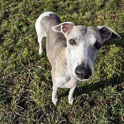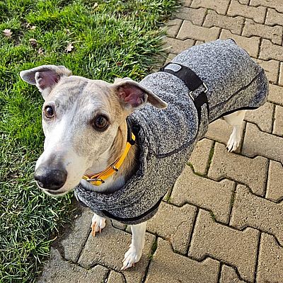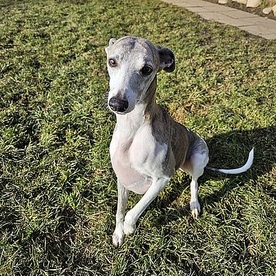 Whippet Rüde Kai zeigt sich bei uns freundlich, umgänglich, aufgestellt, aktiv und aufmerksam. Typisch Rasse ist er aber auch sensibel und vorsichtig gegenüber Fremden. Es muss ihm regelmässig die Gelegenheit geboten werden, seiner Leidenschaft, Vollgas herumzusprinten nachzukommen, dies am besten in einem gesicherten grossen Auslauf. Im Wald und am Waldrand muss er an der langen Leine / Schleppleine geführt werden, da sein Jagdtrieb ausgeprägt ist. Mit anderen sozialen Hunden kommt er gut zurecht. Rassebeschreibung: Die oftmals eingezogene Rute wird des Öfteren als Angst interpretiert, ist aber eine rassespezifische Eigenschaft: Sie ist die Verlängerung der Wirbelsäule und wird bei Windhundrassen aufgrund der Schräglage des Beckens in Ruhestellung bodenwärts und niemals waagerecht oder hocherhoben getragen – ausgenommen bei übermütigen Junghunden oder bei Aggressionen. Grundgehorsam ist nicht viel vorhanden, da muss Kai noch einiges dazu lernen. Auf den Spaziergängen merkt man ihm in gewissen Situationen noch eine Unsicherheit an. Diesbezüglich braucht Kai eine Person die im Sicherheit vermitteln kann. Kai benötigt abwechslungsreiche Spaziergänge und sollte auch mit Kopfarbeit, wie z.B. Fährten und Suchspielen, je nach dem was ihm Freude / Spass bereitet, gefördert, aber nicht überfordert werden, denn genügend Ruhephasen sind sehr wichtig für das Wohlbefinden eines Hundes. Kai benötigt eine konsequente, aber faire und feine Führung. Eine gute, passende Hundeschule ist von Vorteil. Kai stammt aus der Schweiz und wurde aus gesundheitlichen Gründen der Vorbesitzerin bei uns abgegeben. Er lebte mit zwei anderen Windhunden zusammen.