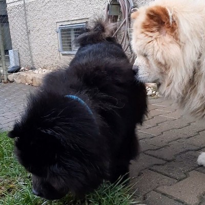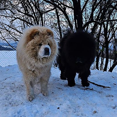 Rüde Karl und Hündin Simba sind sehr freundlich, umgänglich und lieb. Typisch Rasse ist oftmals ihr "eigener Kopf" 😉 Der Eigensinn des Chow Chows erfordert einen geübten sowie geduldigen und manchmal kreativen Hundebesitzer. Dem Alter entsprechend sind beide noch fit, keine Sportskanonen mehr, aber trotzdem noch flott unterwegs. Grundgehorsam ist vorhanden, muss aber weiter ausgebaut und gefestigt werden. Karl musste wegen seiner starken Vernachlässigung durch den Vorbesitzer vom Tierarzt geschoren werden. Sein Fell ist aber in der Zwischenzeit schon gut nachgewachsen. Beide Hunde mussten diesbezüglich leider auch zuerst aufgepäppelt werden. Da Karl und Simba aufeinander fixiert sind, suchen sie ein gemeinsames Zuhause. Gegenüber fremden Hunden entscheidet die Sympathie. Regelmässiges Bürsten lieben beide Hunde. Sie stammen aus einem Tierschutzfall mit späterem Verzicht. Geboren wurde sie in Italien.