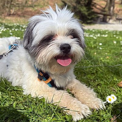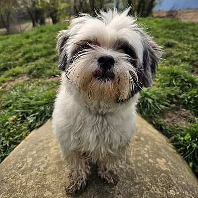 Der junge Rüde Kimmy zeigt sich bei uns freundlich, umgänglich, fröhlich, verschmust und aufmerksam. Mit anderen sozialen Hunden kommt er gut zurecht. Grundgehorsam ist vorhanden, aber Kimmy kann da noch einiges dazulernen. Autofahren in der Box ist er sich gewöhnt und für ihn kein Problem. Sein Fell braucht regelmässige Pflege bzw. muss fachmännisch gekürzt werden. Drinnen kann er sehr gut entspannen und ruhen. Draussen auf den Spaziergängen verunsichert vieles den kleinen Rüden, da zeigt sich Kimmy eher ängstlich und bellt dann aufgeregt bei Begegnungen mit Velos etc. Diesbezüglich braucht Kimmy neue Besitzer die ihm Sicherheit, Vertrauen und Stabilität vermitteln können und die Ruhe behalten, wenn er sich aufregen sollte. Regelmässiges Training in kleinen Schritten und wir sind sicher, dass Kimmy schnell lernen wird sich zurückzunehmen und auch einmal etwas "Stress" (z.B. Velos) auzuhalten. Dazu benötigt Kimmy abwechslungsreiche Spaziergänge und sollte auch mit Kopfarbeit, wie z.B. Fährten und Suchspielen, je nach dem was ihm Freude / Spass bereitet, gefördert, aber nicht überfordert werden, denn genügend Ruhephasen sind sehr wichtig für das Wohlbefinden eines Hundes. Kimmy braucht eine konsequente, aber faire und feine Führung. Eine gute, passende Hundeschule ist von Vorteil. Kimmy wurde in der Schweiz geboren und wurde bei uns abgegeben, da die Vorbesitzerin mit seiner Unsicherheit draussen nicht so gut klar kam.