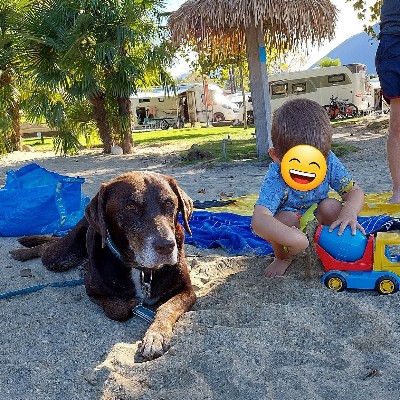 Luna liebt die täglichen Spaziergänge, egal ob neben dem Laufrad oder frei ohne Leine. Sie kann mittlerweile apportieren und freut sich über jedes kleine Leckerli. In unserem Garten ist genug Platz, damit sich alle austoben können. Luna ist nun auch ein Campinghund und auch das macht sie super mit!