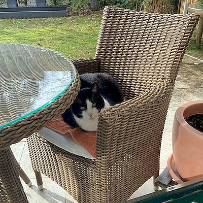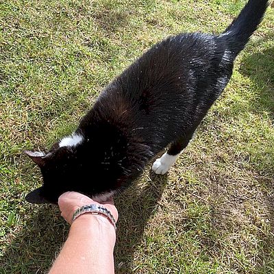 Aus dem anfänglich misstrauischen «Möckli» ist eine fitte und freigangliebende Dame geworden, die sich im Quartier ihren Platz erobern konnte. Obwohl sie mit kleinen Schritten zutraulicher und entspannter wird, lässt sie sich nur mit Vorsicht streicheln. Trotzdem ist sie gerne in unserer Nähe, sei es im Garten oder im Haus. Sie liebt es ihren Bauch zu sonnen und ausgiebig zu dösen. Und ja, und eine kleine Feinschmeckerin ist sie auch.