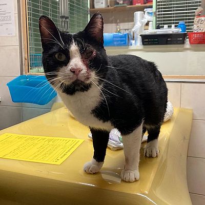 Kater Obelix ist zutraulich und tauchte verletzt im Garten bei den Findern auf. Er wurde umgehend zum Tierarzt gebracht und ist nun bei uns.