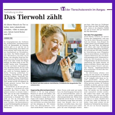 Tele M1 Report berichtet in einer vierteiligen Serie aus Anlass unseres Jubiläums «150 Jahre Aargauischer Tierschutzverein ATs» über unsere Arbeit.