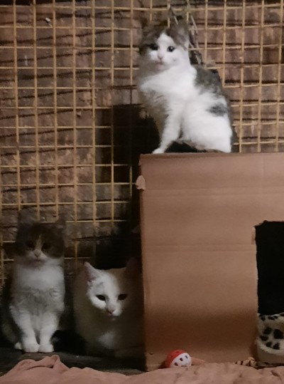 Nun können wir euch endlich auch ein paar Informationen zu der nächsten Katzenfamilie aus dem in den Vormonaten beschriebenen Tierschutzfall geben. Die Katzenmama heisst Lakota und ist eine Tricolor-Kätzin. Sie kam mit ihren vier Kitten bei uns an. Leider hat eins der Kitten es nicht geschafft, aber Larena, Lenox und Larry sind gesundheitlich inzwischen so stabil, dass wir sie euch vorstellen möchten: