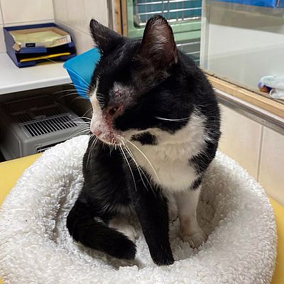Kater Obelix ist zutraulich und lieb. Er tauchte verletzt bei den Findern / Melderschaft im Garten auf und wurde umgehend zum Tierarzt zur Behandlung gebracht. Nun ist Obelix bei uns im Tierheim.