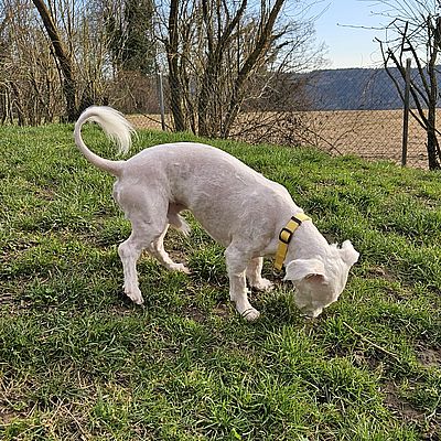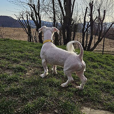 Der Rüde Oli ist freundlich, aktiv und aufmerksam. Zurzeit sieht er etwas "kahl" aus, betreffend Fell, da er geschoren werden musste. Oli kam dazumal ziemlich verwahrlost und gestresst bei uns an. Damals wollte er sich von unseren Tierpflegerinnen noch nicht wirklich pflegen lassen und quittierte dies mit Schnapp Attacken. Wir gaben ihm die Zeit, um sich einzugewöhnen und anzukommen. In der Zwischenzeit lässt er sich von vertrauten Personen gut händeln. Tierarztuntersuchungen sind ihm aber immer noch ein Greuel ;-), er mag es nicht, wenn er zu fest gehalten oder "fixiert" wird. Mit gezielten Übungen und positiven Verstärkungen konnten aber schon einige Verbesserungen im Verhalten erzielt werden. Mit anderen Hunden, wenn die Chemie stimmt, kommt er sehr gut zurecht. Grundgehorsam / Leinenführigkeit ist etwas vorhanden muss weiterhin aufgebaut und gefestigt werden. Autofahren kennt Oli und sollte kein Problem sein. Oli benötigt regelmässige Fellpflege, sobald es wieder nachgewachsen ist. Er muss mit abwechslungsreichen Spaziergängen, etwas Kopfarbeit, evtl. Fährten und Suchspielen, je nach dem was ihm Freude bereitet, gefördert, aber nicht überfordert werden, denn genügend Ruhephasen sind sehr wichtig für das Wohlbefinden eines Hundes. Oli benötigt eine konsequente, aber faire und feine Führung. Eine gute, passende Hundeschule ist von Vorteil. Oli stammt zusammen mit zwei anderen Hunden (vermittelt) aus einem Tierschutzfall. Er kommt ursprünglich aus der Slowakei und kam als Welpe in die Schweiz.