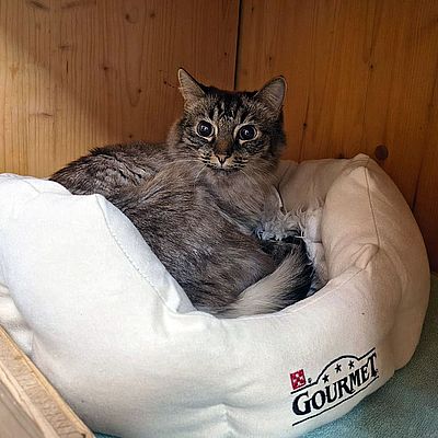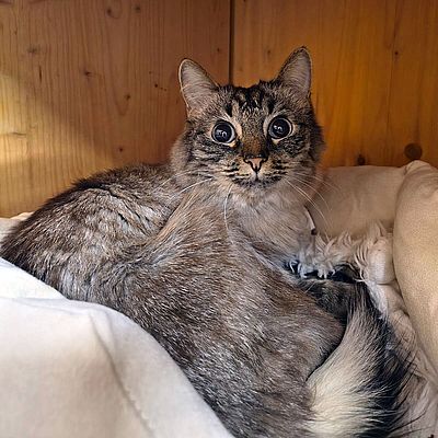 Die Katzendamen Sinus und Moe zeigen sich bei uns, nach der Eingewöhnungsphase, zutraulich und verschmust. Sie kamen zu uns, da leider ihr Besitzer verstorben ist. Sie werden nur gemeinsam vermittelt.