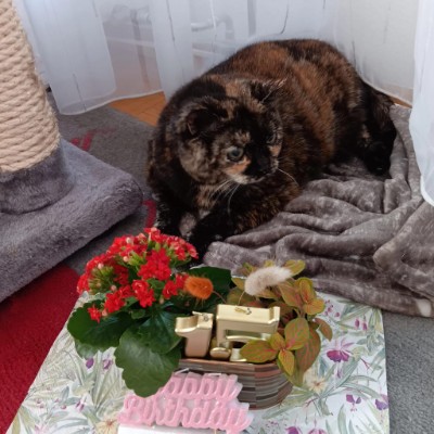 Happy Birthday Mazuri Kätzin Mazuri hat Mitte Oktober auf ihrem lebenslangen Pflegeplatz ihren 15. Geburtstag gefeiert
