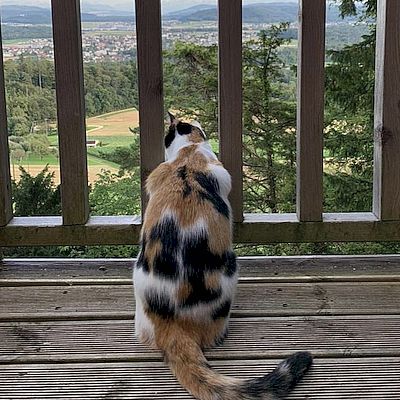 Anfangs Januar 2023 ist Fifi bei uns eingezogen. Da sie ziemlich verfressen und enorm «gwundrig» ist, konnten wir sie bereits am ersten Tag ins Wohnzimmer locken. Als sie noch nicht nach draussen durfte war sie gar nicht begeistert. Sie liebt es im Garten zu liegen. Um hinaus zu gehen oder ins Haus zu kommen lässt sie uns gerne die Terassentüre öffnen, da es natürlich viel bequemer ist, als diese «lästige» Katzenklappe zu benützen.