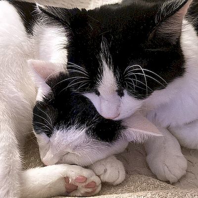 Vor einigen Wochen haben wir von Ihnen Pascha adoptieren dürfen. Es freut uns sehr Ihnen mitteilen zu können, dass sich Simba bereits an Pascha gewöhnt hat und sie sich immer öfters beschnuppern. Kuscheln oder ablecken gab es leider noch nicht aber vielleicht kommt das ja noch. Aktuell sind beide sehr häufig und sehr lange draussen und geniessen ihre Freiheit.