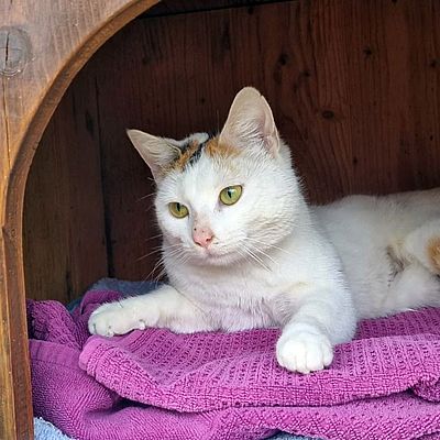 Katzendame Wajana zeigt sich, vor allem am Anfang, noch sehr zurückhaltend und etwas misstrauisch. Sie ist eine Freigängerkatze, die abseits von stark frequentierten Strassen aufgewachsen ist, weshalb wir für sie auch wieder eine grüne, ländliche Umgebung suchen.