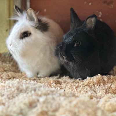 Rasse: Zwergkaninchen / weiss mit wenig schwarz & schwarz