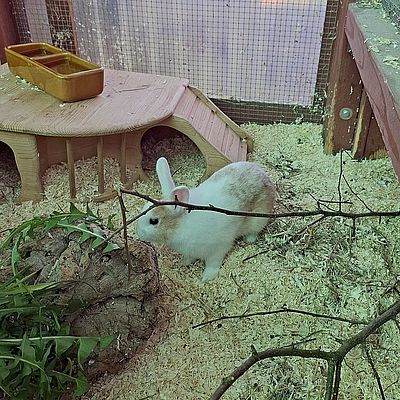 Nerina und Loco zeigen sich neugierig und zutraulich, vor allem wenn man gutes Futter und feine Knabbereien liefert 😉 Sie werden nur gemeinsam in eine grosse, kaninchengerechte Aussenhaltung vermittelt. Kaninchen benötigen einen sauberen, geräumigen Stall und einen grossen Auslauf mit verschiedenen Versteckmöglichkeiten, der viel Platz zum Hoppeln, Buddeln und Hakenschlagen bietet.