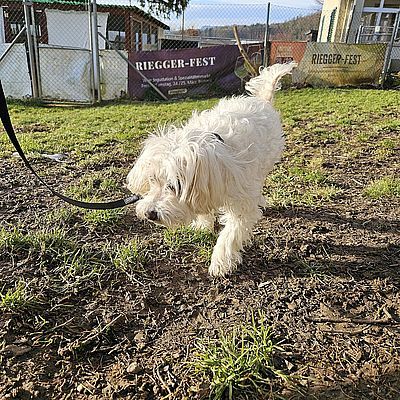 Rüde Tim zeigt sich bei uns freundlich, umgänglich, fröhlich und aufmerksam. Mit anderen sozialen Hunden kommt er gut zurecht. Grundgehorsam ist nicht viel vorhanden, da könnte Tim noch einiges dazu lernen. Leinenführigkeit, Autofahren, Tierarztbesuche sind kein Problem. Sein Fell braucht regelmässige Pflege bzw. muss fachmännisch gekürzt werden. Tim benötigt abwechslungsreiche Spaziergänge und sollte auch mit Kopfarbeit, wie z.B. Fährten und Suchspielen, je nach dem was ihm Freude / Spass bereitet, gefördert, aber nicht überfordert werden, denn genügend Ruhephasen sind sehr wichtig für das Wohlbefinden eines Hundes. Tim benötigt eine konsequente, aber faire und feine Führung. Eine gute, passende Hundeschule ist von Vorteil. Tim stammt aus der Schweiz und wurde aus gesundheitlichen Gründen der Vorbesitzer bei uns abgegeben. Da bei Tim nach der Abgabe eine Patellaluxation (Kniegelenk) rechts festgestellt wurde, musste er sich am 12. Januar 2026 einer Operation unterziehen. Tim hat die Operation gut überstanden. Er könnte bei passenden Interessenten aber auch gerne schon in der Genesungsphase ins Probewohnen umziehen 😉