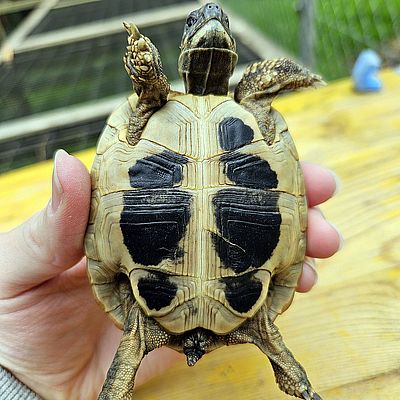 Die junge Schildkröte Toni wurde am 8. September 2025 aufgefunden und zu uns ins Tierheim gebracht. Er konnte gleichentags auf eine externe Pflegestelle weiterziehen..