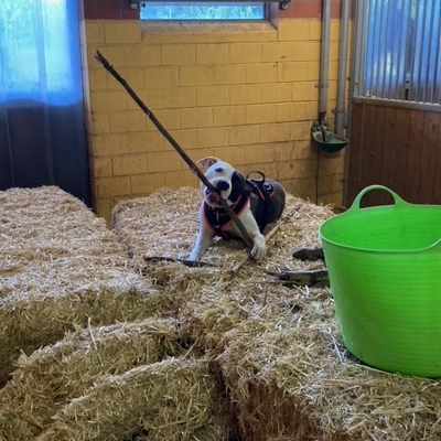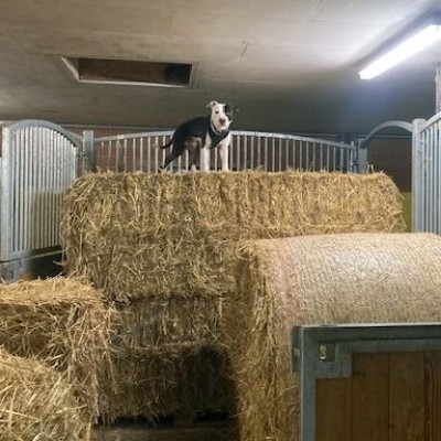 Toni hat sich sehr gut bei uns eingelebt. Er liebt es im Traktor mitzufahren. Auch die Hundeschule meistert er mit Bravour.